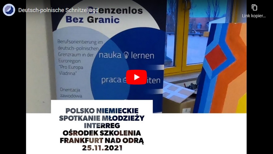 Nazwy narzędzi trzeba było na koniec zapisać w formie dwujęzycznej krzyżówki. Zadanie to okazało się być bardzo skomplikowane i wystawiło współpracę młodych ludzi na próbę. Jednak bariera językowa nie była w stanie powstrzymać dobrze zmotywowanych uczestników. Wkrótce udało im się za pomocą hasła rozwiązanej krzyżówki trafić na ślad kolejnej wskazówki. Krótki rajd grupy po Centrum Kształcenia, na terenie którego rozmieszczono kolejne drobne zadania, doprowadził w końcu do osiągnięcia celu. Dzięki świetnej pracy zespołowej uczestnicy mogli cieszyć się ze słodkiej nagrody – smakołyków i artykułów upominkowych od Izby Rzemieślniczej we Frankfurcie nad Odrą.